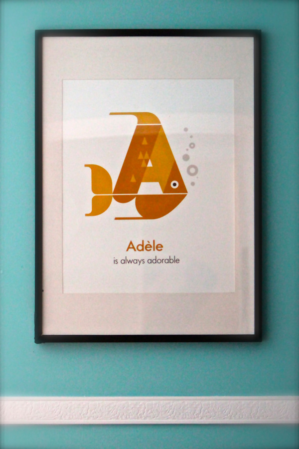 Emily was kind enough to give me access to their iPad apps which my daughter loves as well as a personalized print which looks amazing in her room. She does fishy lips everytime she sees it before bed!
